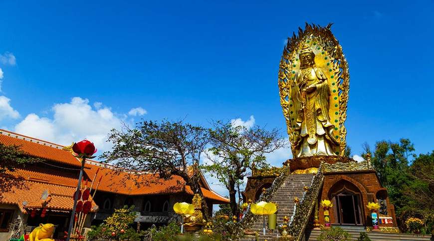 Viếng Chùa Thanh Lương – Ngôi chùa làm chủ yếu từ san hô, men sứ, gáo dừa vô cùng độc đáo. Quý khách còn được chiêm bái Quan Thế Âm giữa hồ vô cực.