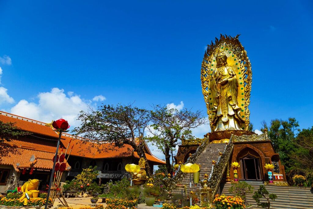 Viếng Chùa Thanh Lương – Ngôi chùa làm chủ yếu từ san hô, men sứ, gáo dừa vô cùng độc đáo. Quý khách còn được chiêm bái Quan Thế Âm giữa hồ vô cực.